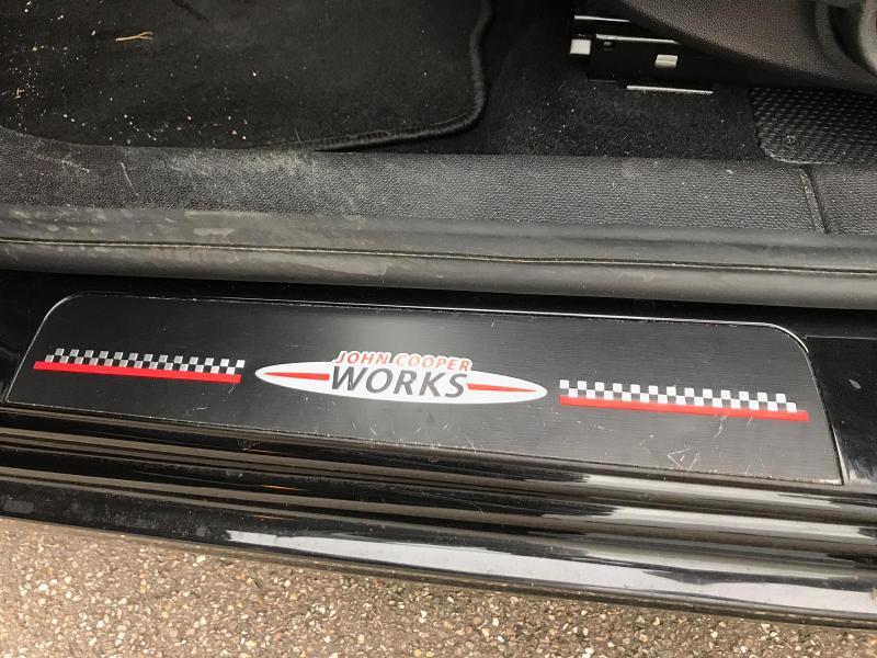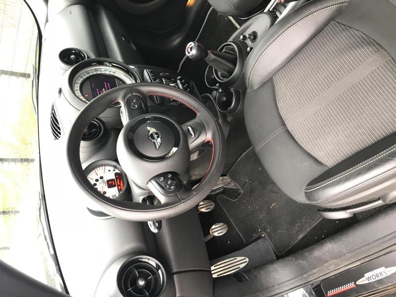 Colour Line Carbone Black, encarts intér Black Checkered, bouton Sport, Dark Style, interface musique, radio Mini Visual Boost, clignotants blanc, garnissage pavillon anthracite, sièges sport, Wired, accoudoir central av rabattable, JCW Chili, volant en cuir JCW, commande multifonctions au volant, fonction Auto Start Stop, kit aérodynamique JCW, boulons antivol de roue, pavillon dans la couleur du véhicule, suspension sport, becquet ar, Frais utilisation 200